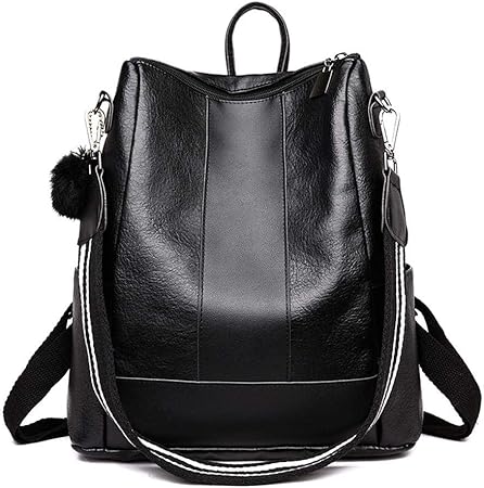 Uto Femme Sac A Dos Sac Depaule A Franges Anti Vol Convertible En Pu Cuir Souple Noir Sacs Portes Dos Femme