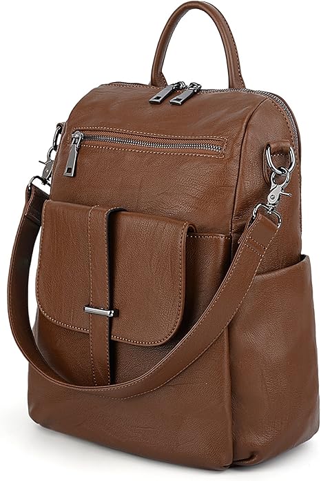 Uto Femme Sac A Dos Porte Epaule Pu Cuir Lave Convertible Sac A Main Avec Poche De Ceinture Avant Brun Amazon Fr Bagages