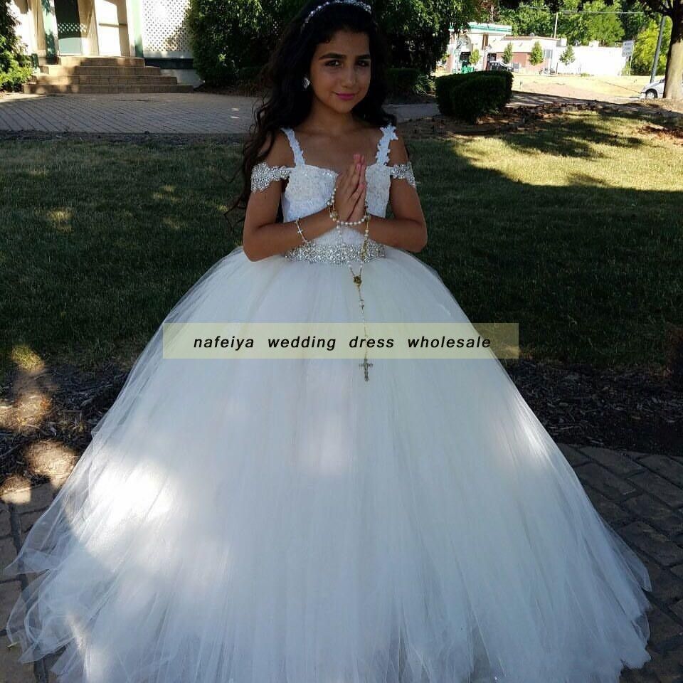 Acheter Robe De Demoiselle Dhonneur De Luxe 2018 Off The Shoulder Dentelle Blanche Appliques Robe De Bal Filles Pageant Robe Pour Les Petites Demoiselles Dhonneur Junior Childern De 59 05 Du Nafeiya Dhgate Com